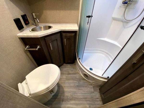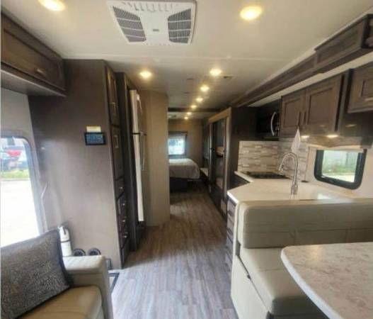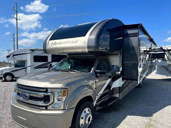 This Super C is on a Ford F-600 4x4 diesel chassis offering a higher payload capacity than the F-550, it has a 10 speed transmission and its 37’ 9” long with a full-wall slide. It has a king bed, bunk beds, and a bunk over the cab, the dinette and couch also convert to beds it sleeps 6-10 people. It also has an electronic pad that controls everything and you can Bluetooth your phone to it so you can control everything from your phone. Comes with Solar system, residential refrigerator with ice maker, convection oven/microwave, on demand water heater, 3 televisions and much more. There is an exterior kitchen and entertainment center and is prepared for a washer/dryer unit. I towed a ram 1500 behind it and didn’t have any issues.