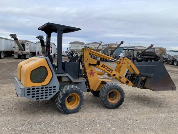 2008 Swinger 2K Articulated Loader, diesel engine, hydrostatic transmission, canopy, lights, skid steer attach bucket and pallet forks. 31x15.50-15 tires, 1786 hours.