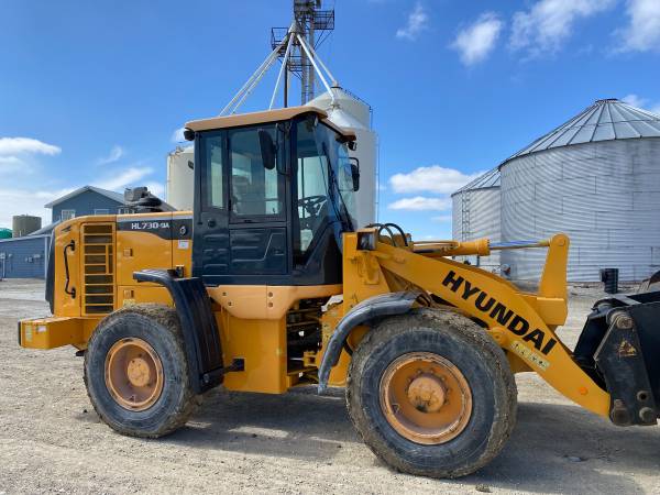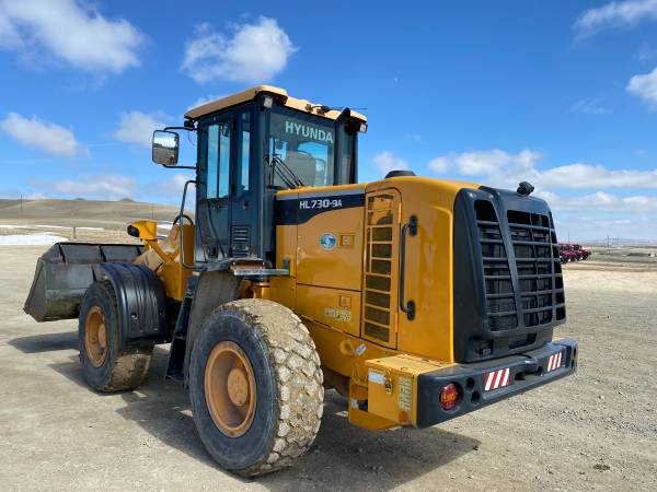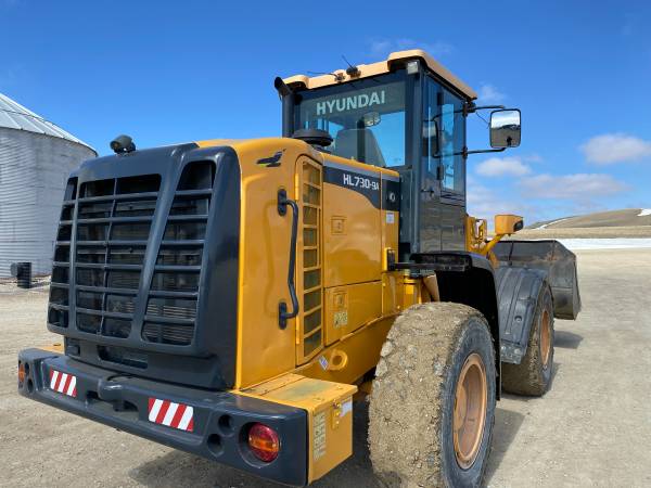 Hyundai HL730-9A Wheel Loader, EROPS, cummins diesel engine, heat, air conditioning, Am/Fm radio, 8' bucket, 2.5 cubic yard capacity, 17.5R25 tires, operating weight 23,500 pounds, rear view camera....