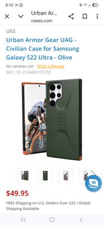Used Urban Armor Gear Phone Case for a Galaxy S22 Ultra for sale. Olive green & Orange. No spam!