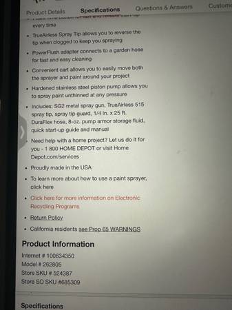 Only used once this summer for a project and no longer needed. I tried to rent one of these from a couple rental stores in Great Falls only to find they were not cleaned properly and not working very well, so renting the sprayer was a waste of my money. I decided to buy one at Home Depot for $419.00.