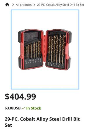 MAC Tools 29 Pc Cobalt Drill Bit Set. Like new condition. The only one that has been used is 13/64. Shipping available. Asking $350