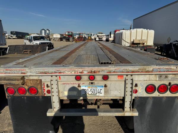 1992 Featherlite Flatbed Trailer, 45' aluminum bed trailer, side winches, tandem axle, air ride suspension, 295/75R22.5 tires.